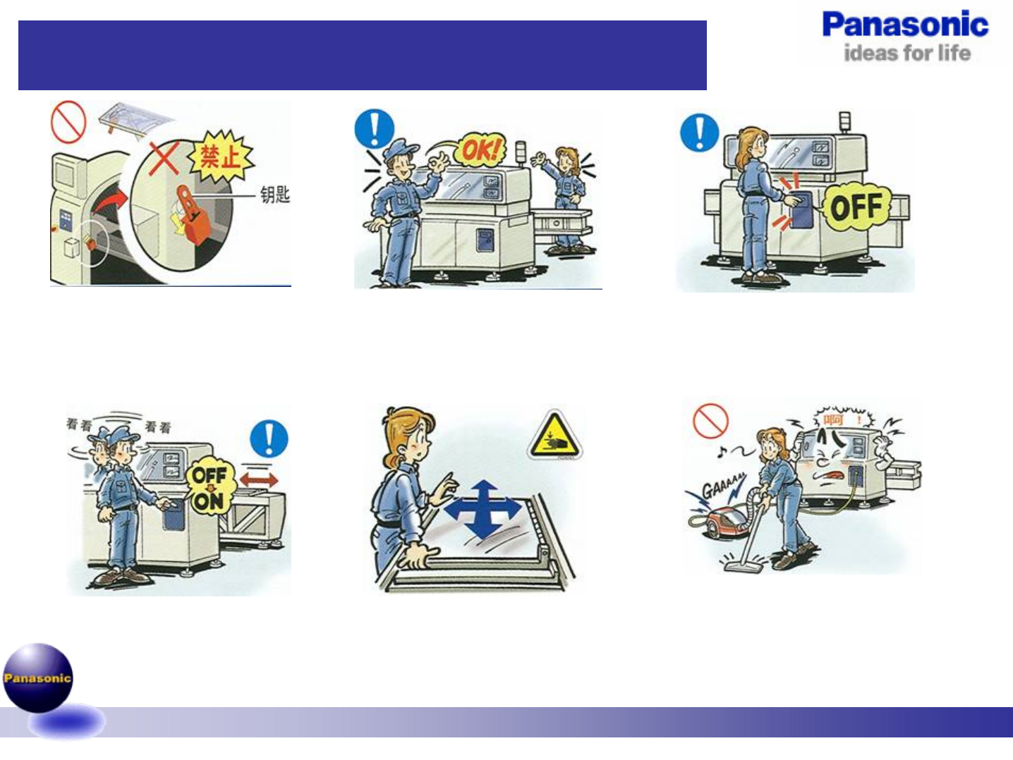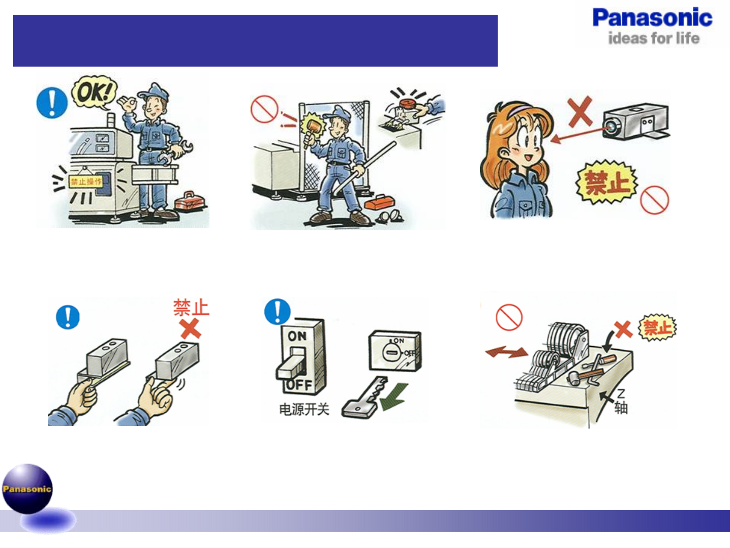 1.0-070301 6/26 维修方面的安全注意事项 电源开启状态下进行设备后部危 险时,使后部操作有效。并把警 告信息牌挂在前部面板上。 不可随便拆除或改造指定的安全 机构(防御栅栏、安全保护紧急 停止装置等)。 不可直接用眼睛去看设备上的激 光装置发出的激光。 检查各种传感器时,应使用纸片、 小镊子等,此时手指不可放在传 感器感应表面上。 进入设备内部维修时,一定要关 闭主电源,并使SERVO开关处于 OFF状态。 绝对不可以把工…
