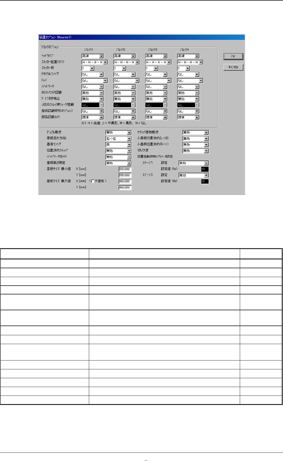 Tg0984-ID-OP 2-27-1 3.3新しい装置の登録 TableB8-2 項 目 説 明 標準値 基板サイズ 最小値 X パターンプログラムチェック時の最小基板サイズ Y を 設定します。 50.000 基板サイズ 最小値 Y パターンプログラムチェック時の最大基板サイズ X を 設定します。 460.000 基板サイズ 最大値 X パターンプログラムチェック時の最大基板サイズ Y を 設定します。 460.000 基板サ…