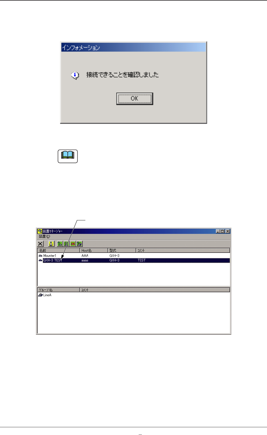 Tg0984-ID-OP 2-27-2 (6) [ 接続チェック ] ボタンを押します。 正しく接続されている場合には、 “インフォメーション” ( 確 認 )画面が表示されます。 Fig.B21 ノート “エラー” 画面が表示された場合には正しくネットワークが接 続されていません。 Host 名を間違えている、またはケーブルの断線や、コネクタ のゆるみなどがないか確認してください。 (7) [OK] ボタンを押します…