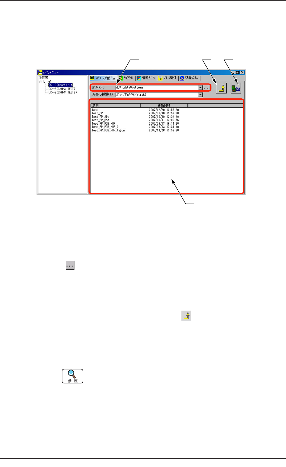Tg0984-ID-OP 2-79 5.メインメニュー ライブラリ “ライブラリ”タブシートが表示されます。 [3] に、 “部品 ID” タブと、 部品ライブラリの一覧が表示されます。 管理データ “管理データ”タブシートが表示されます。 [3] に、 “装置稼働情報”タブ、 “機種別稼働情報”タブ、 “スキッ プ & 吸着率情報”タブ、 “リコールデータ”タブが表示されます。 ノズル関連 “ノズル関連”…