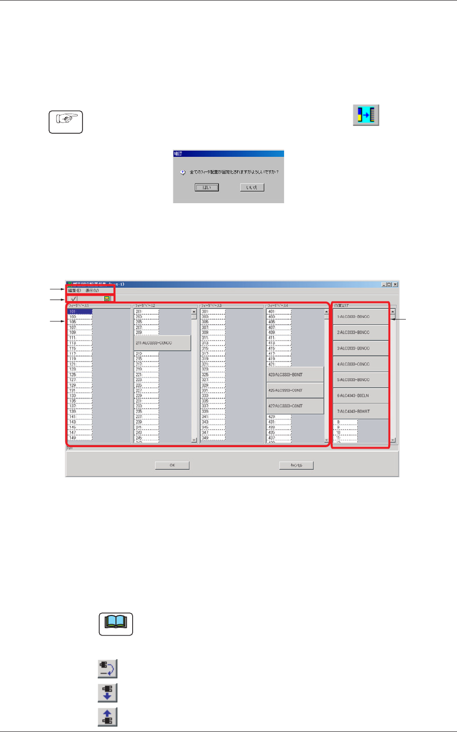 (2) [ はい ] ボタンを押すと、“部品固定配置編集”画面が表示