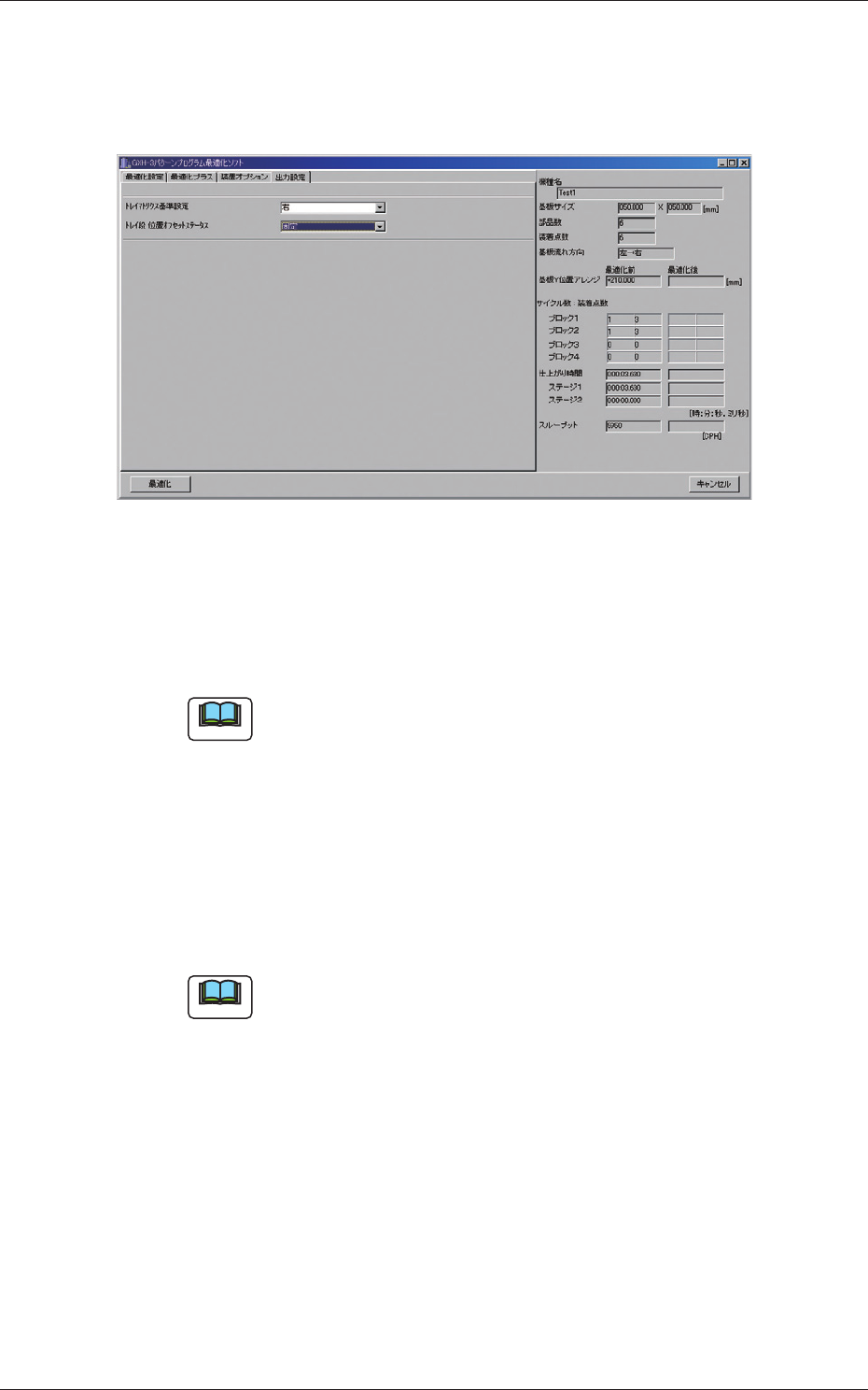 したい場合は、“最適化設定”タブシートの [ ノズルストッカー配置 ]
