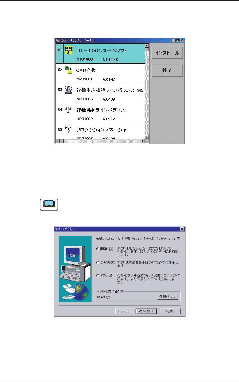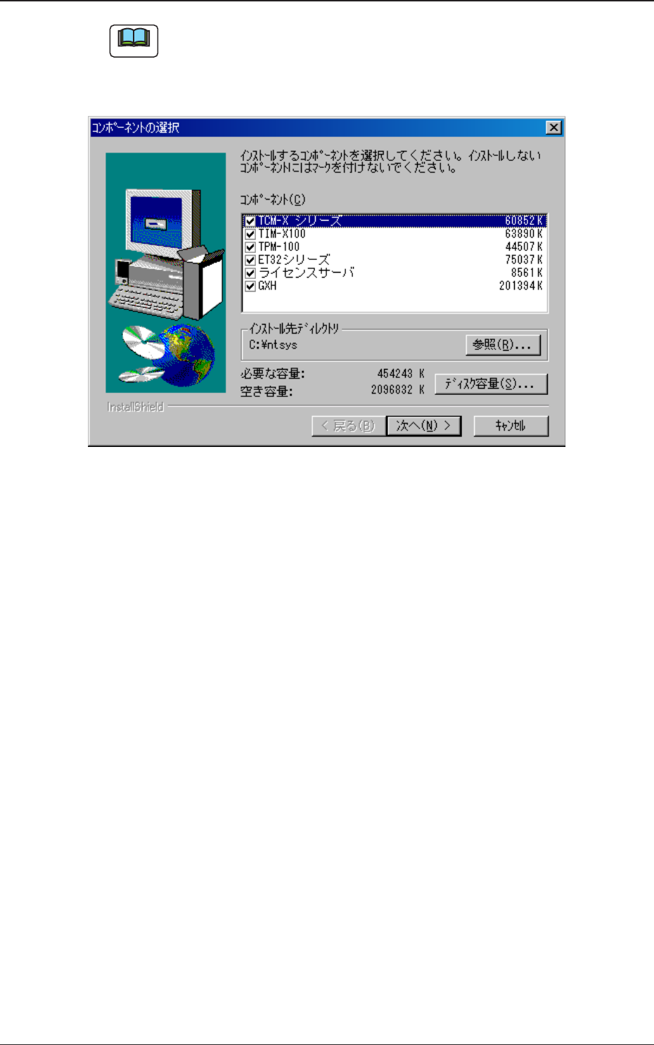Tg0984-ID-OP 1-5 1.4NT-100 システムソフトのセットアップ ノート インストールするソフトウェアを選択したい場合は、 “セットアッ プ方法”画面で“カスタム”を選択してください。 以下の画面が表示され、インストールしたいソフトウェアを選択す ることができます。 Fig.A3“コンポーネントの選択”画面 (7) “セットアップ方法”画面の指示に従い、セットアップを 行います。 (8) セットアップ…