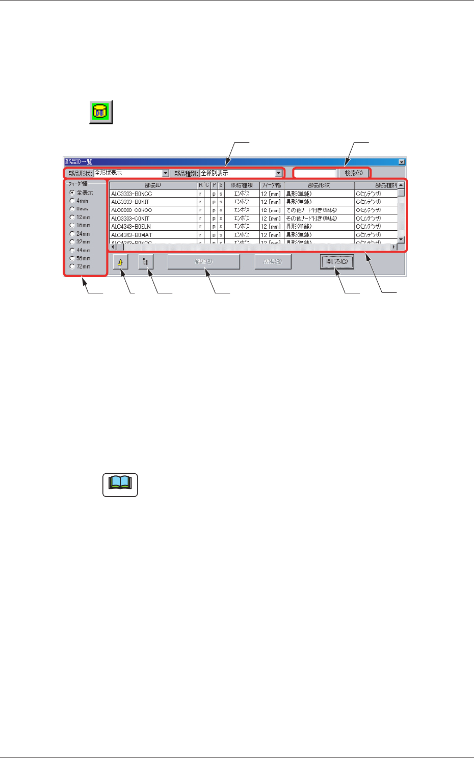 データを選択すると、選択したデータに該当する部品種類が [8]