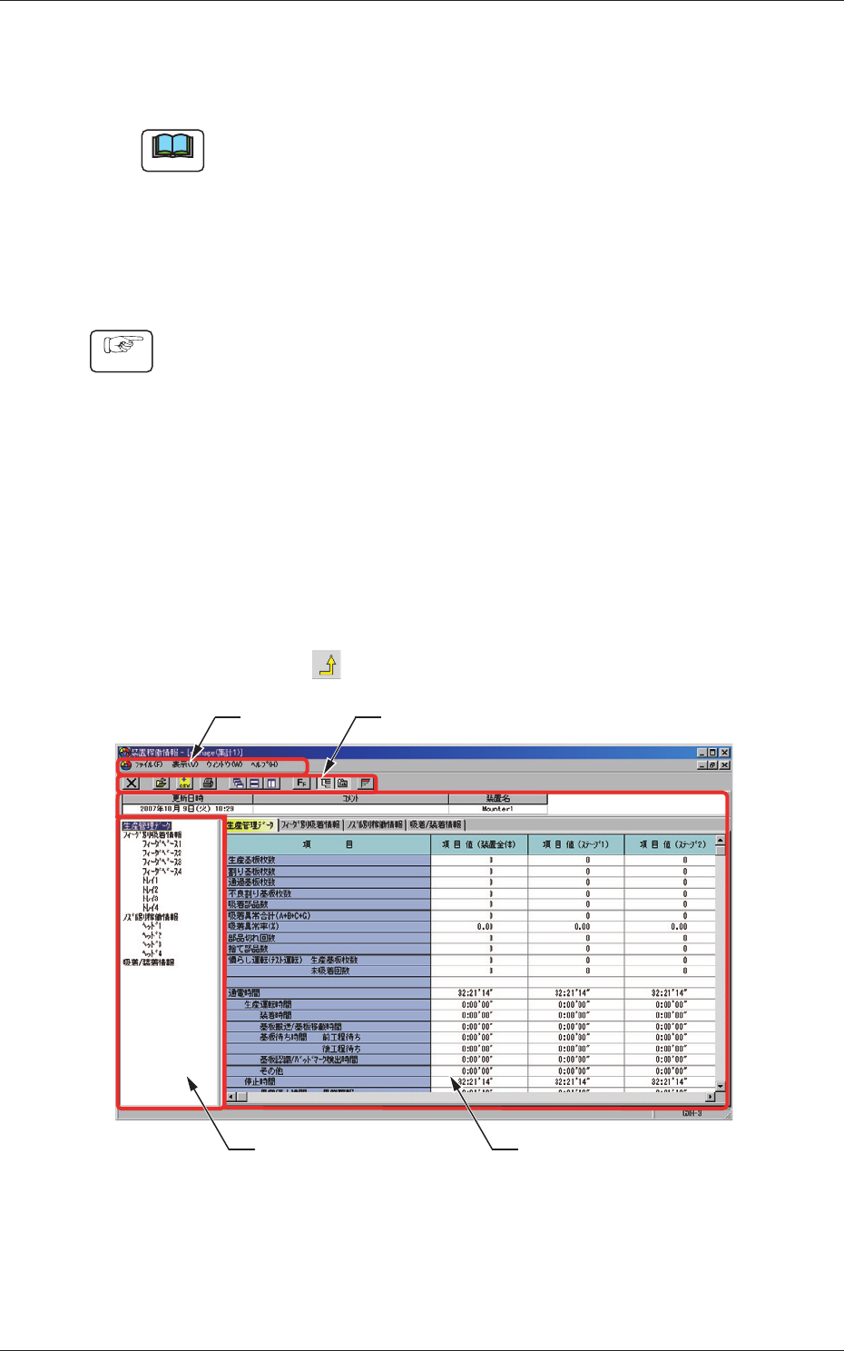 装置稼働情報を表示する手順について説明します。