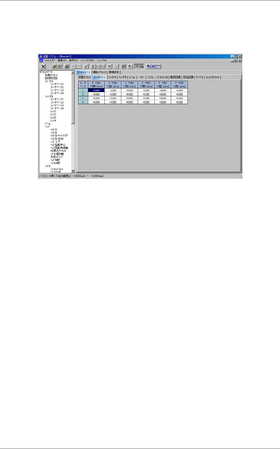 “オフセットデータ”タブシートの [ ビーム ] タブを押すと、以下の