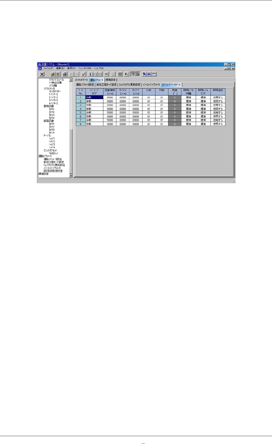 “運転パラメータ”タブシートの[バーコードマークデータ]タブを