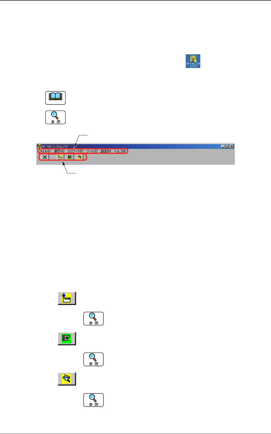 詳細については、“2.“NT-100システムソフト”画面の操作”を参