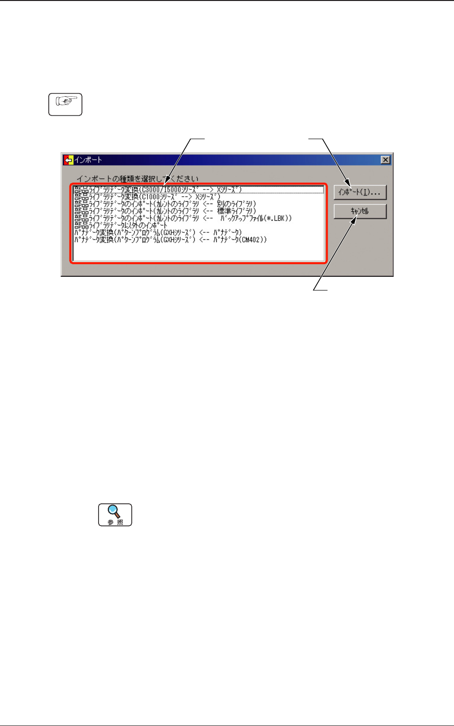 (2) 任意のインポートの種類を選択し、[ インポート ] ボタン
