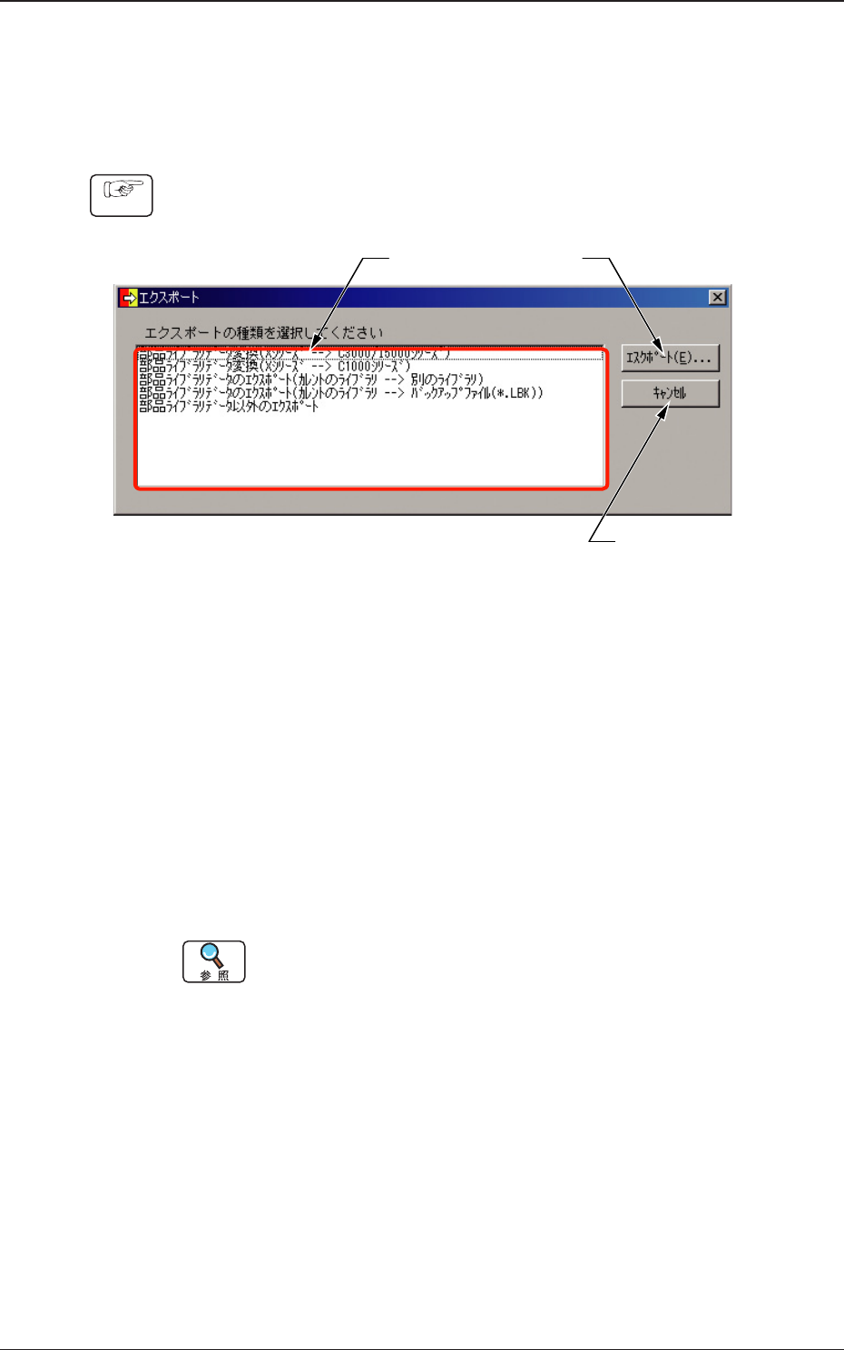 (2) 任意のエクスポートの種類を選択し [ エクスポート ] ボタ