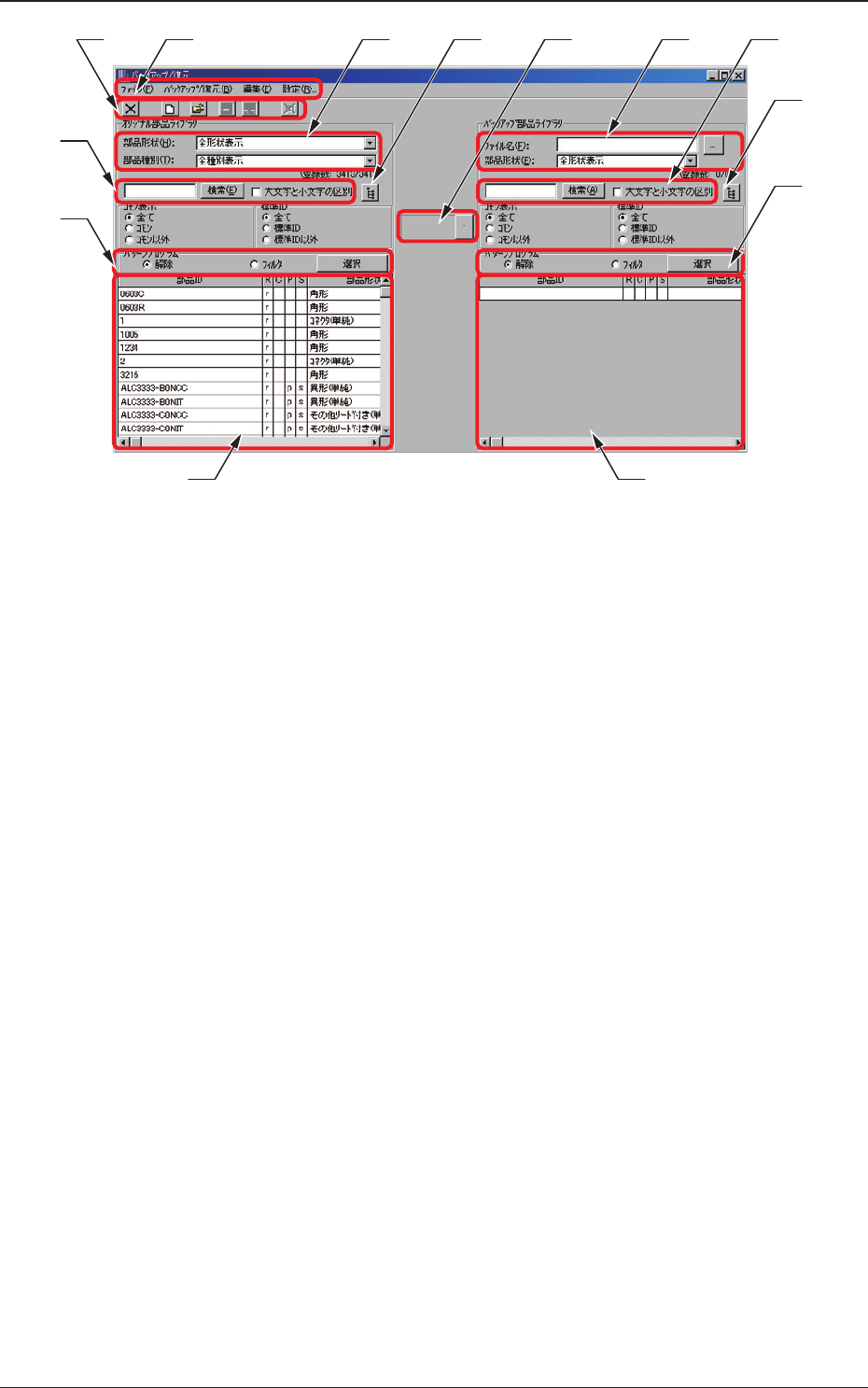 AB?DE と入力すると ? 部分に任意の一文字を含む部品 ID 名