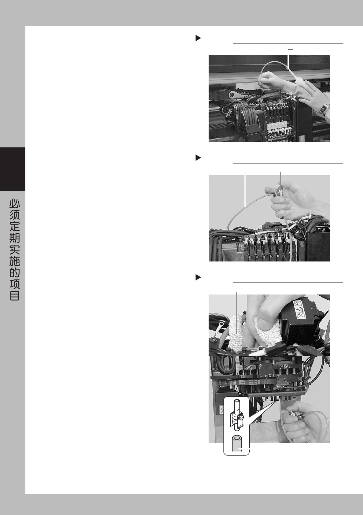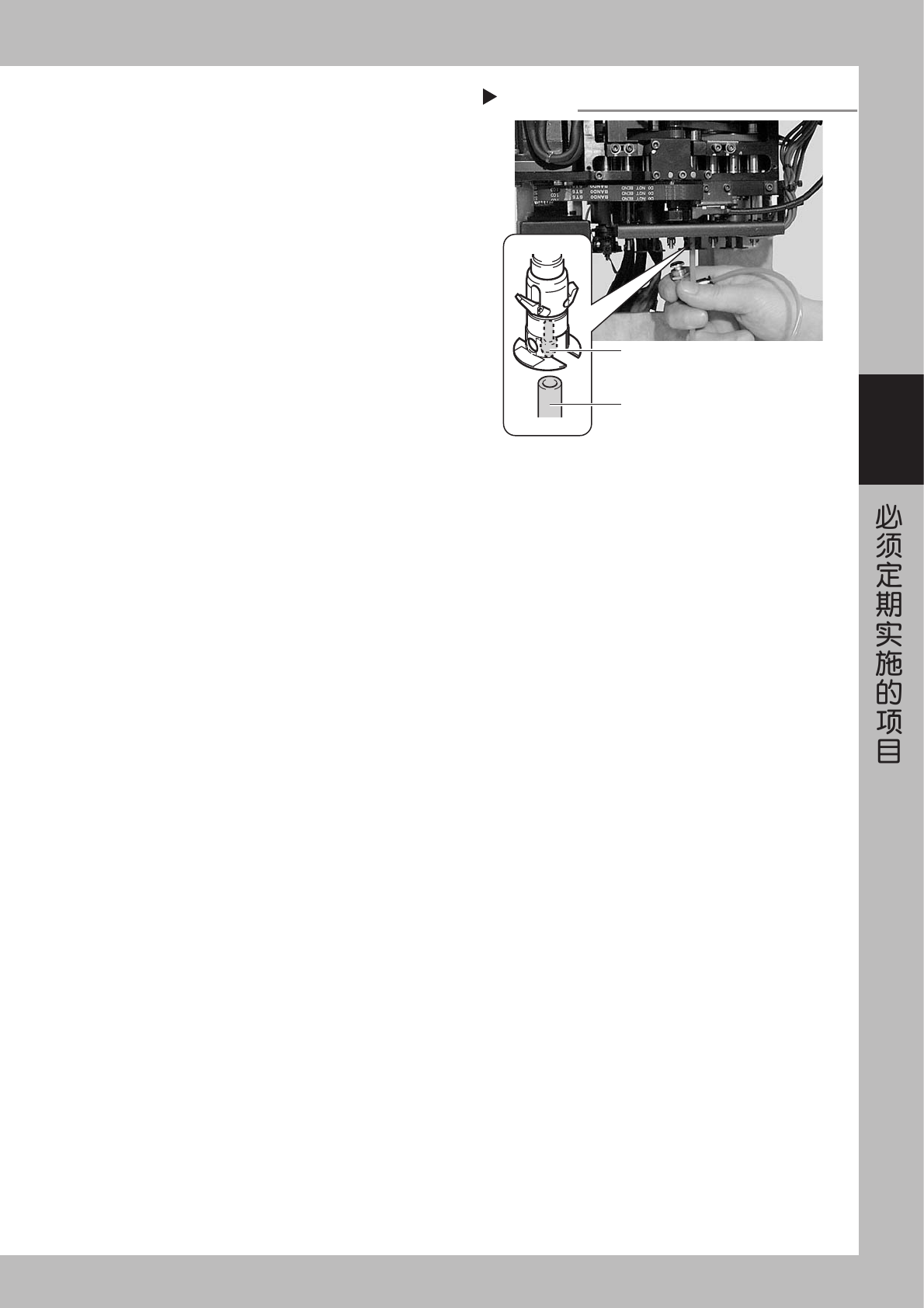 3-22 3 3 进 行 齿 条 的 清 洗 。 1 . 请 将 清 洁 工 具 的 喷 嘴 伸 入 齿 键 轴 的 清 洁 孔 , 直 至 碰 到 挡 板 的 位 置 。 2 . 请 注 入 IP A 清 洗 齿 键 轴 的 空 气 通 道 。 55 3 43 - E0 -0 0 4 对 标 准 齿 条 的 空 气 通 道 进 行 气 排 屑 。 对 F 类 型 的 贴 装 头 1 , 3 , 5 , 7 和 S 类 型 的 所 有 …