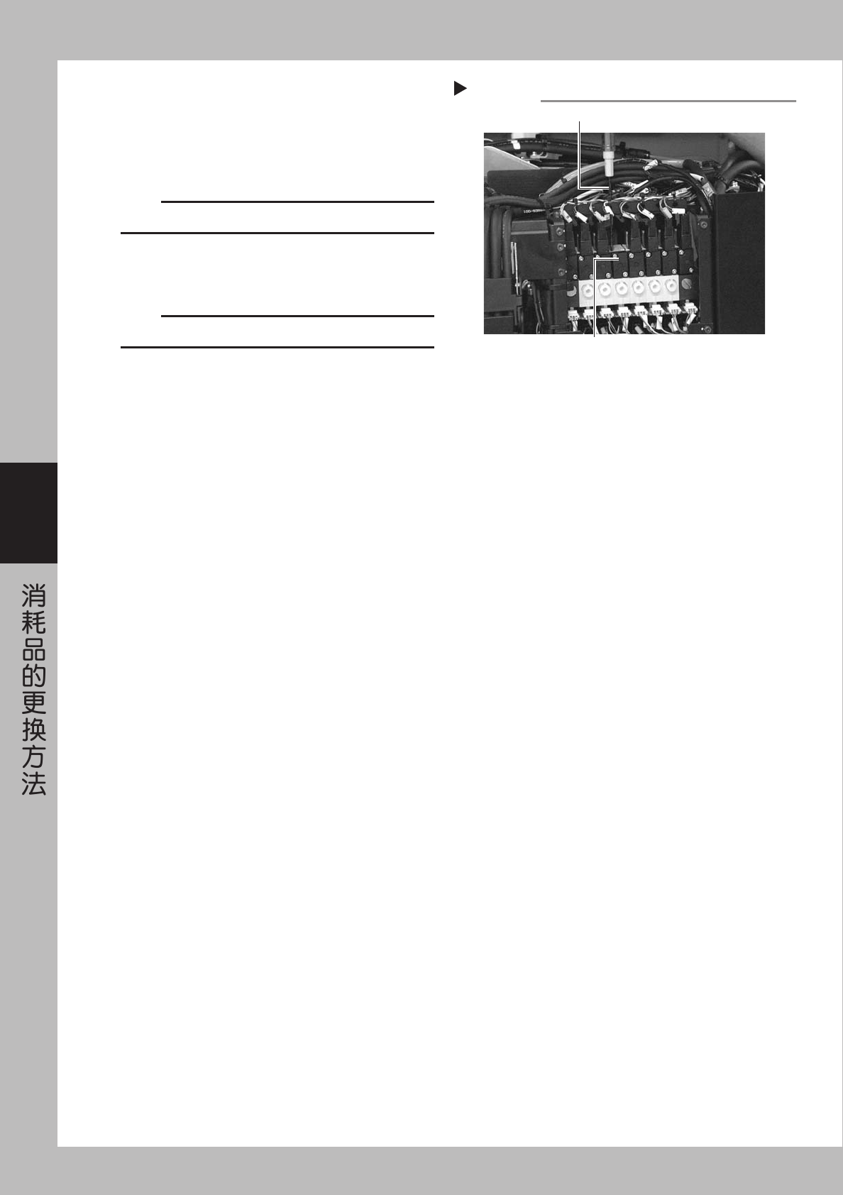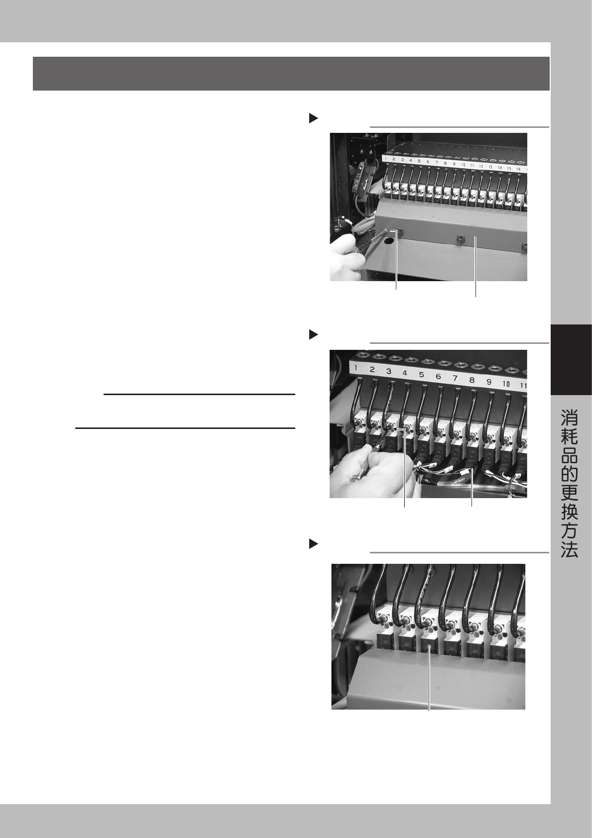 4-5 4 4 . 送 料 器 阀 的 更 换 1 关 闭 机 器 的 电 源 。 退 出 应 用 程 序 ( V G O S ) , 向左 旋 转 机 器 的 电 源 开 关 , 关 闭 电 源 。 2 切 断 气 源 。 打 开 背 面 机 罩 , 取 下 输 气 管 。 3 拆 除 保 险 丝 外 罩 。 请 用 十 字 螺 丝 刀 拆 开 固 定 保 险 丝 外 罩 的 螺 丝 。 55 4 08 - E0 -0 0 4 拆 除…