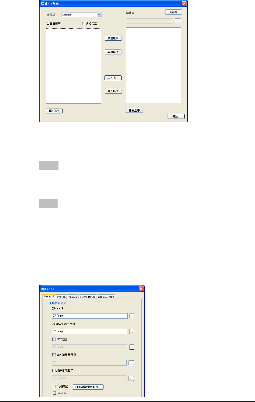 元件库菜单 元件库导入/导出: 在弹出的窗口中,可以点击“导出选中”可导出选中的元件库。 点击 “导出所有” 可导出所有当前程序的元件库。 然后点击右上角的 “另存为” , 则可将需要保存出来的元件库保存到指定的文件内, 保存出来的文件有三个, 分别 为“*.lib”、“*.p tp”、“*.ltp”。 注意:在导出的过程中,如果需要将元件料号和元件库的对应关系一起导出, 需要在导出前选择“链接关系”。 导入元件库有两种方式,一种是…