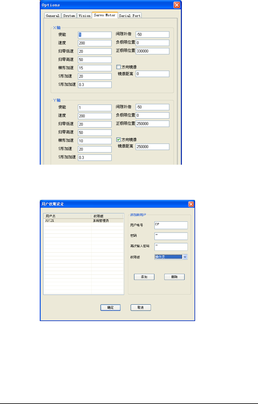 在“Servo Motor”选项中,分别控制 X/Y 轴伺服器参数。非专业人员请勿更