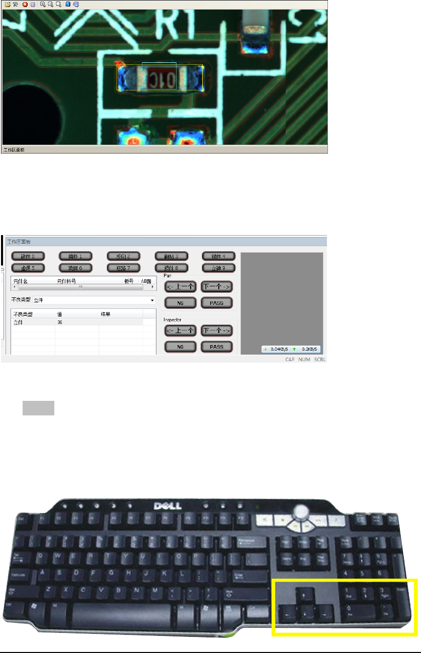 “方向左键” : 元件 OK 时,按下方向左键。 “方向下键” : 元件不良时,按下方向下键。 “方向右键” : 当前窗口处项目 OK 时,按下方向右键。 “ Num 0 键” : 当前窗口处项目不良时,按下 Num 0 键。 “ Num 1 键” : 切换 BGR 图片和白光图片。 “方向上键” : 需要返回上一元件查看时,按下方向上键。 “回车键” : 调出当前 PCBA 检查信息时,按回车键。 5.3 PowerSPC 软件界面:…