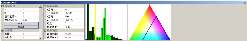 计算检查窗口内部符合亮度和颜色设定范围内的像素组成的尺寸大小最符合目标尺寸