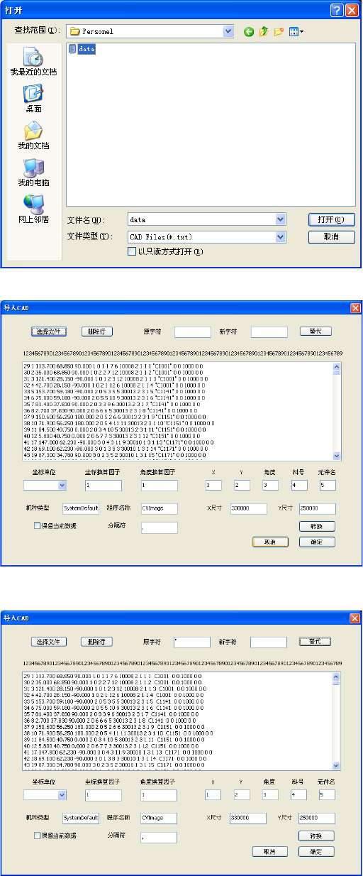 (1)特殊 CAD 数据(贴片机器程序)导入窗口