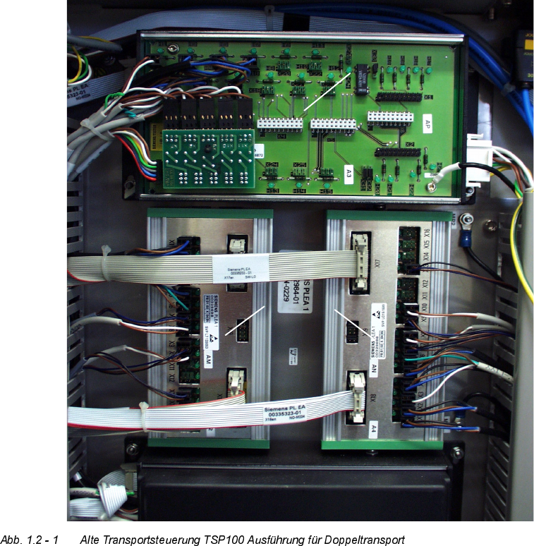 Die folgende Grafik zeigt die alte Transportsteuerung TSP100. Dargestellt ist die Ausführung für