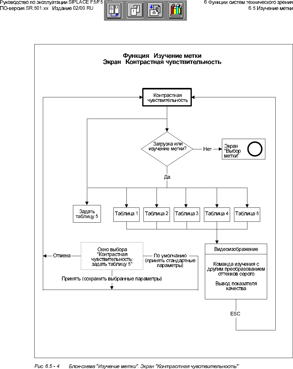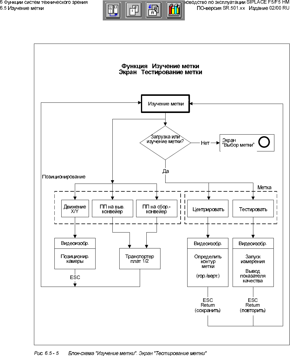W , , W Nein Positionierung Marke testen Marke geladen bzw. geteacht? Menü Markenauswahl A Ja Videobild Anstoß des Meßablaufs Ausgabe der Markenqualität ESC ESC Return (wiederholen) X/Y- Verfahren LP ins Ausgabeba…