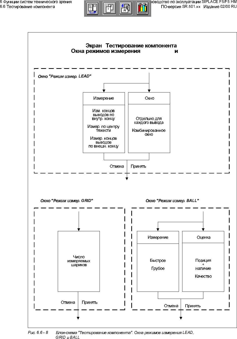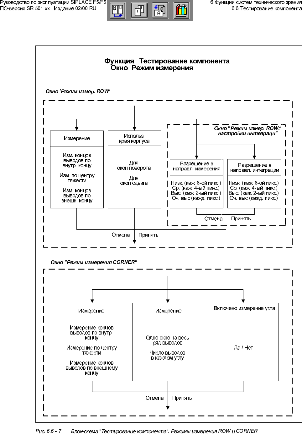 W , , W Menüoptionen 'Bauelement testen' Menüs 'Meßmodus ROW' und Meßmodus 'CORNER' Menü 'Meßmodus ROW' Menü 'Meßmodus CORNER' Spitzenmessung über die inneren Spit…
