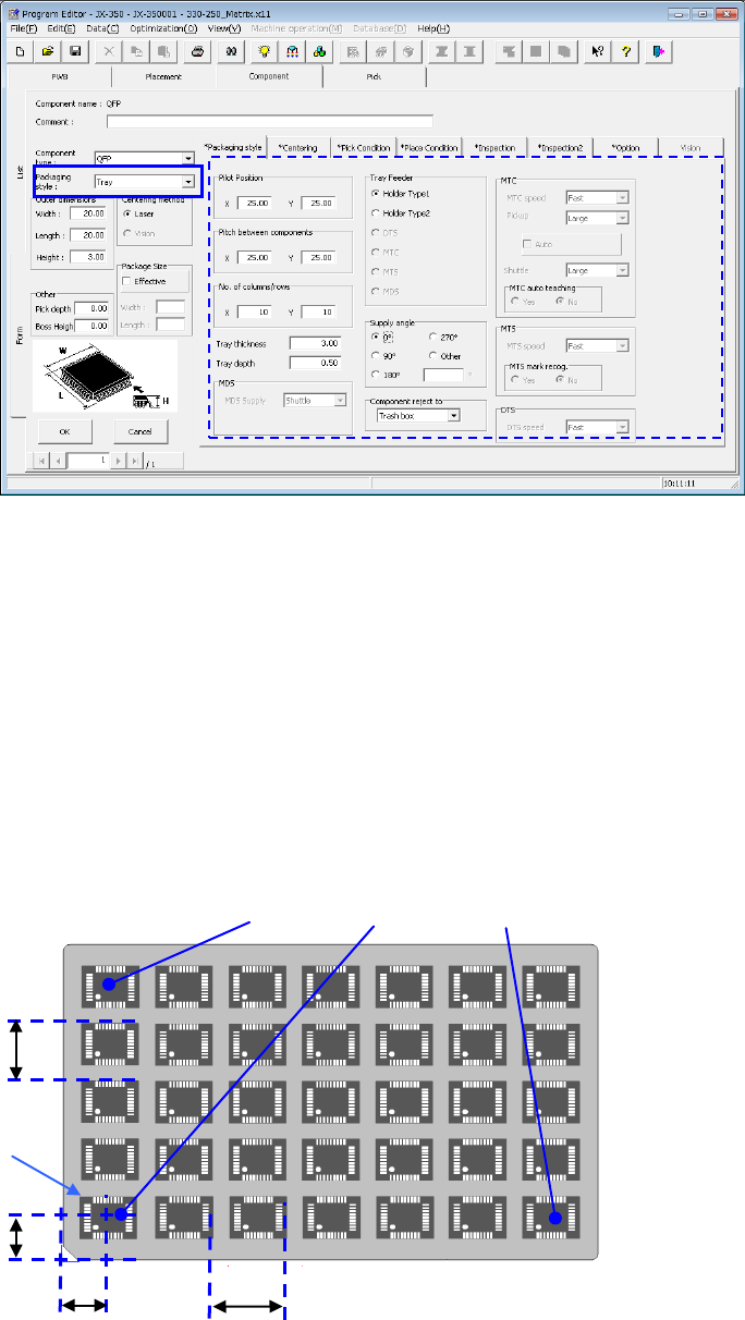 EPU Instruction M anual C hapter 4 Creating a Production Progr am 4- 60 4) T ray thickness Enter the height " T" f rom t he bottom s ide of a tr ay to the top side including the component body . If the thicknes…