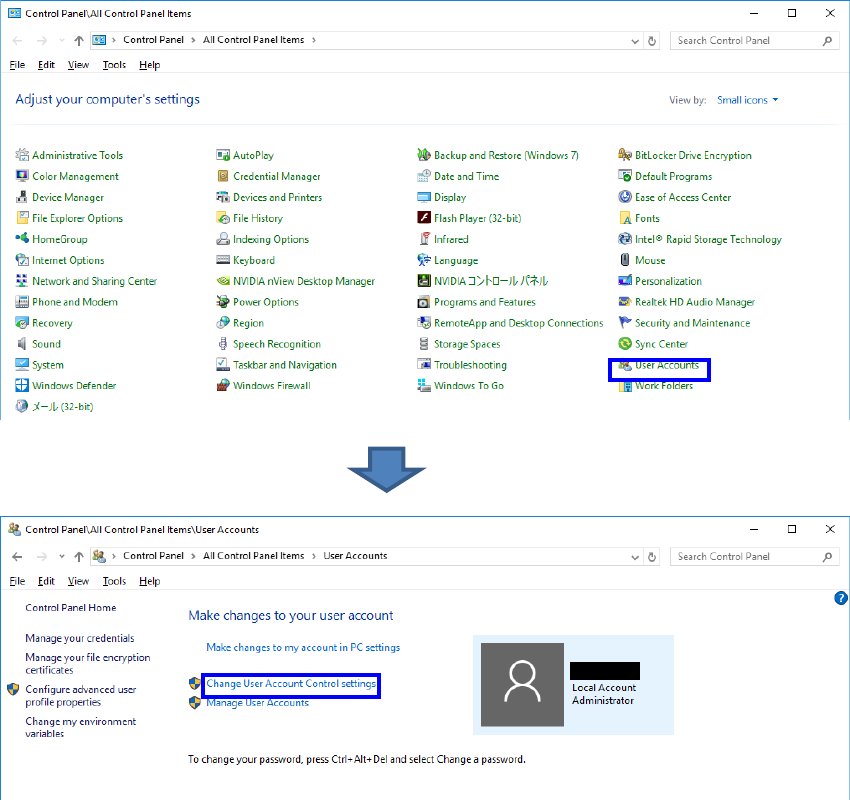 ⑥ Set the "User Account Control (UAC)" again effectively after completing the installation of