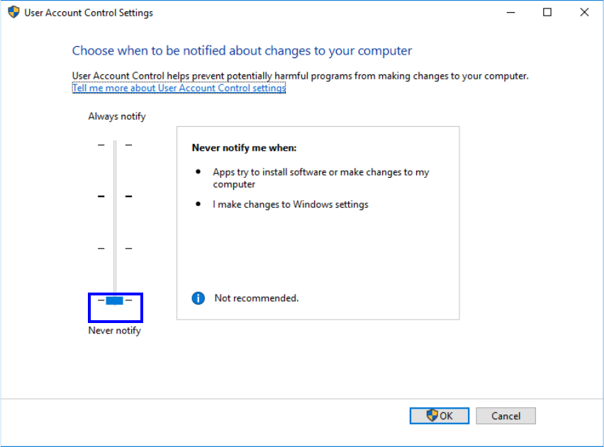 ⑤ After all the software has been installed, turn on the “User Account Control (UAC)” again.
