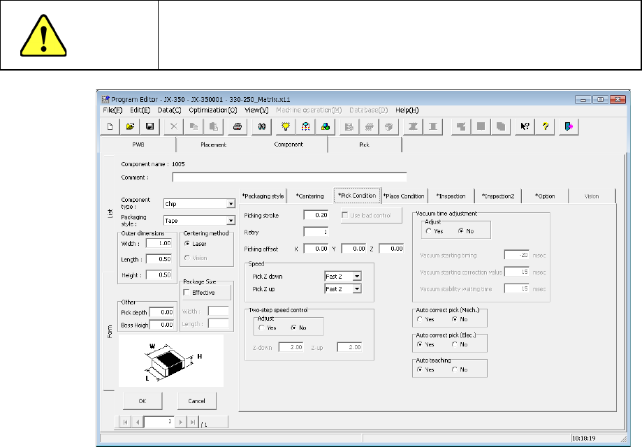 If you set “0” here, the nozzle may not reach a component and may not pick up the