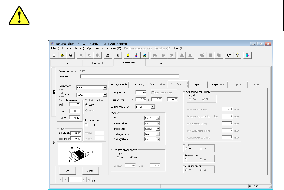 coordinates of a component pick-up position is specified, the system will not