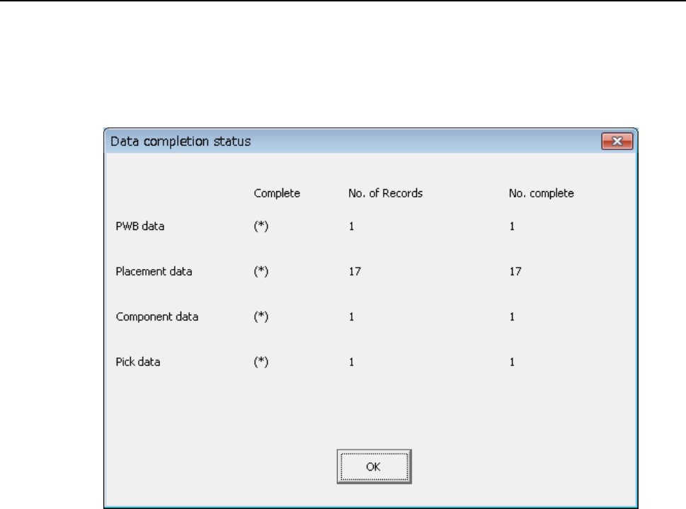 When you select the [Data]/[Data completion status] commands from the menu bar, the