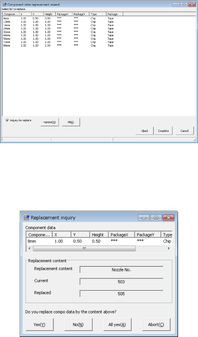 EPU Instruction M anual C hapter 4 Creating a Production Progr am 4- 124 3) List of the selected com ponent s The enter ed data appears on the screen as shown below . • < replace>: The system r eplaces data of the …