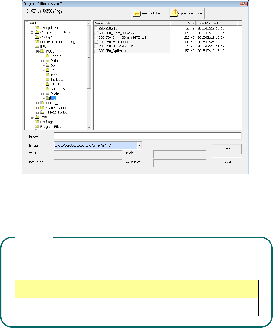 (2) Select a destination production program, and then press the <Open> button.