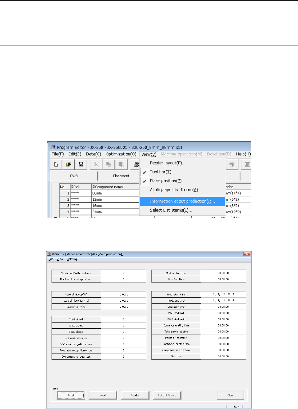 3 Feeder Shows the production management information per feeder.