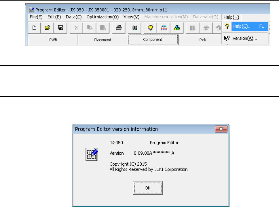 EPU Instruction M anual C hapter 4 Creating a Production Progr am 4- 149 4.6 Hel p 4.6.1 Help Displays the Help screen. 4.6.2 Vers ion information The inf ormation on prog ram edit ing is displayed. - A display example i…