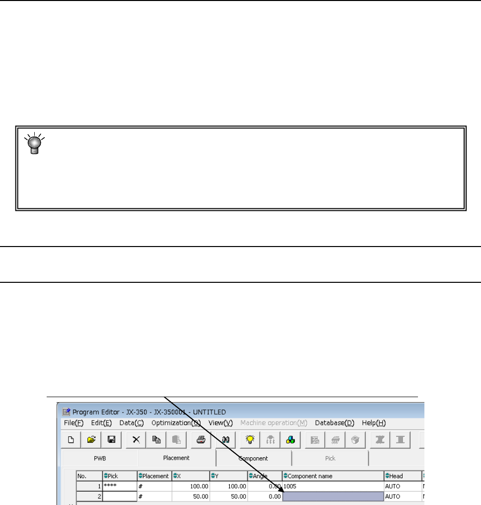 ① Click a blank “Component name” field. ② Click the [Database]/[CallList] commands.