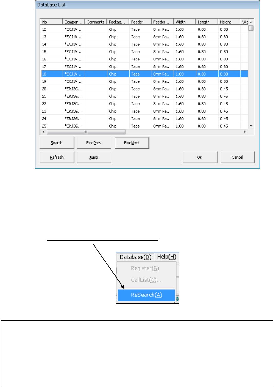 Click the [Database]/[ReSearch] commands.