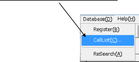 Click the [Database]/[CallList] commands.