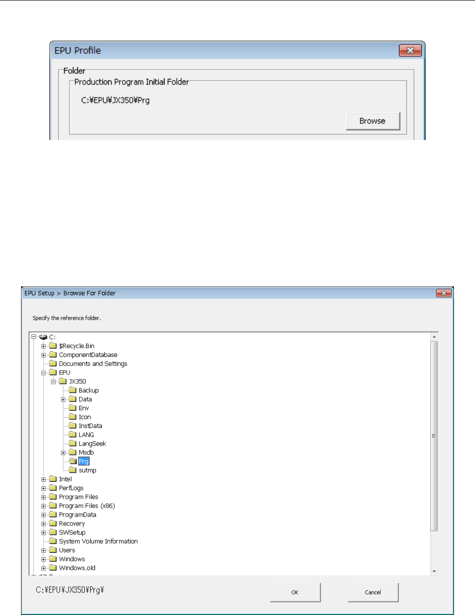 Specify a folder in which a production program used with EPU is stored.