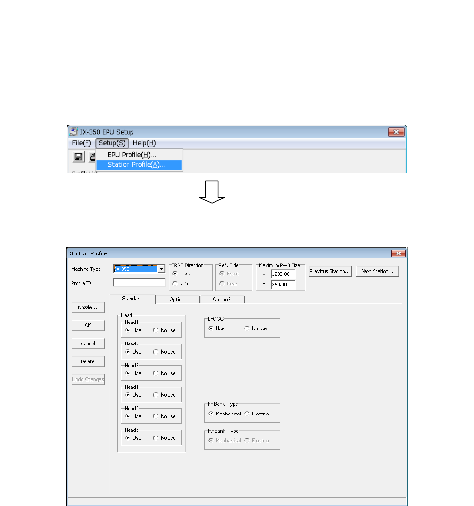 Select the [Station Profile] command on the “Setup” menu provided with the EPU Setup