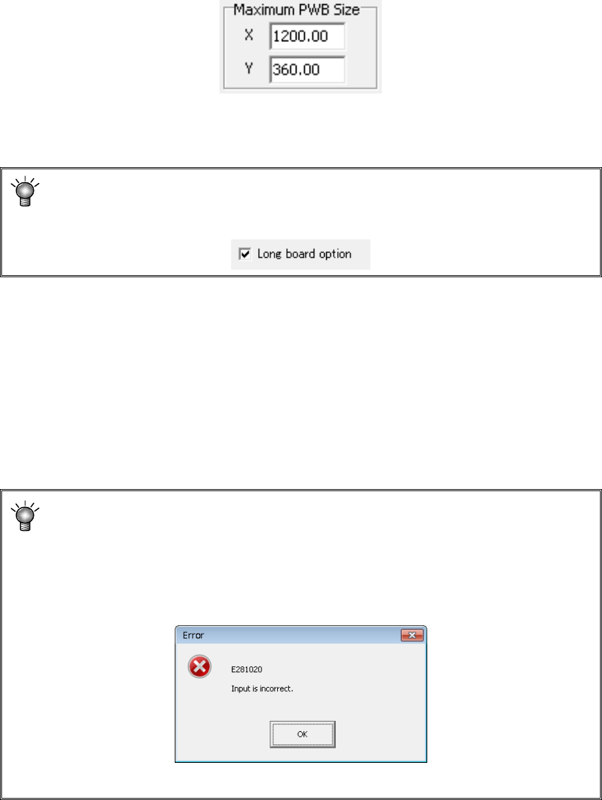 The PWB size can be set within the above settable range of 1200.00 x 999.99