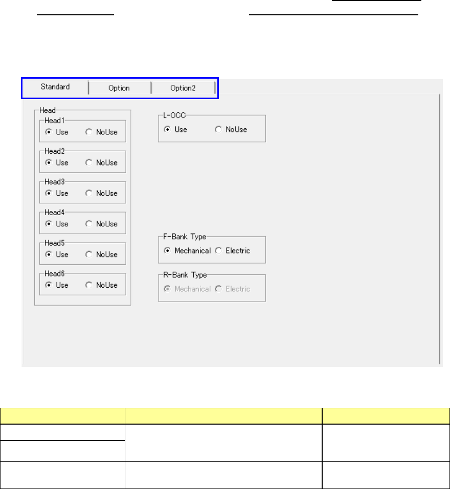 “Option” screen. Click the corresponding tab displayed at the left top corner.