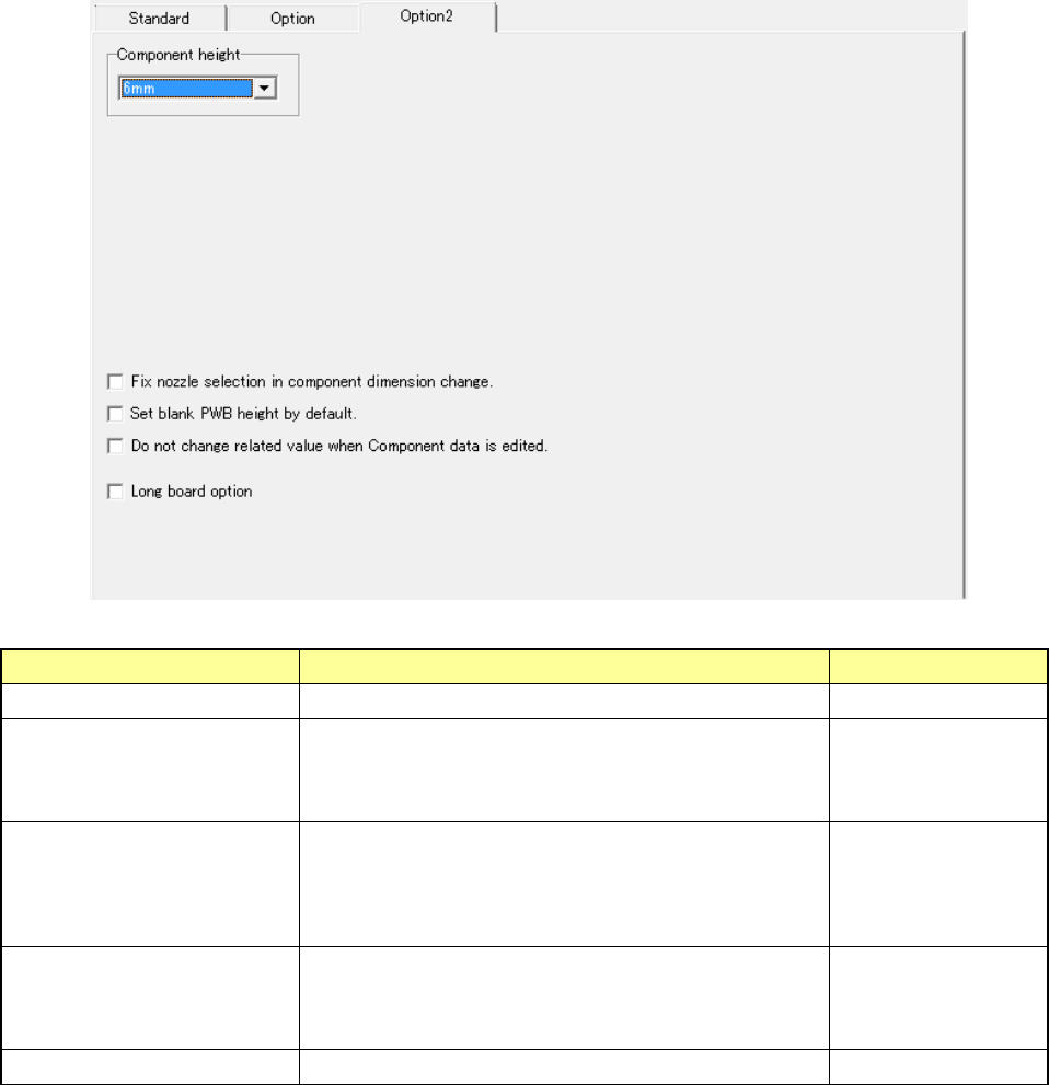 EPU Instructi on Manual Chapter 3 E PU setup 3- 18 Optio n 2 • Display the units w hich can be inst alled as an op tion. Setting item Description Remarks Component hei ght Select the componen t height. (6mm/ 12mm) Fix no…