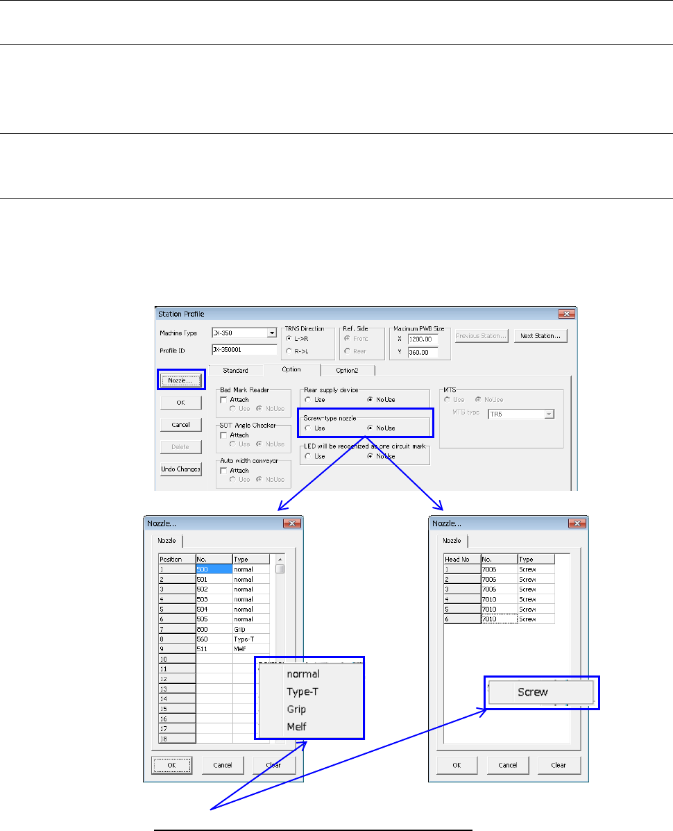 The display and the number of settable nozzles may vary depending on “Screw-type
