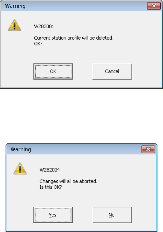 [Delete] button can be pressed for other than the active station profile. When the [Delete]