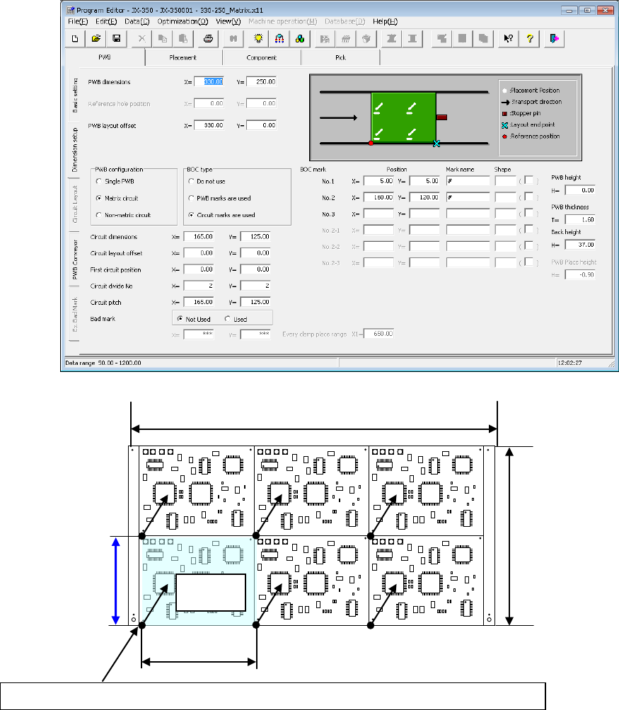 EPU Instruction M anual C hapter 4 Creating a Production Progr am 4- 16 4.1.2.2. 3 Dimension set tings (m ulti - ci rcuit PWB) W hen a PW B in which multiple same circuits are ar ranged on a single PW B is called “ mult …