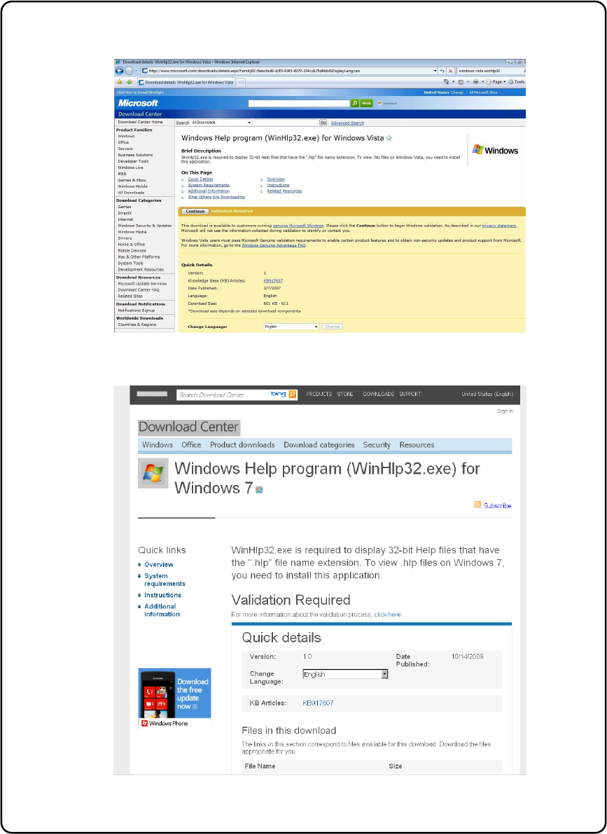 Figure 2-1 Microsoft download center (WinHlp32.exe)