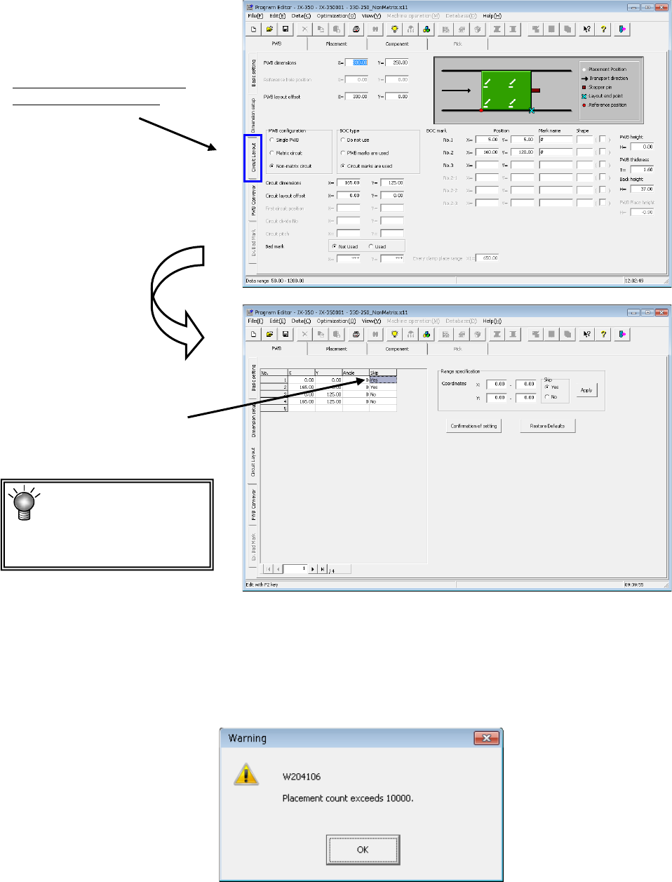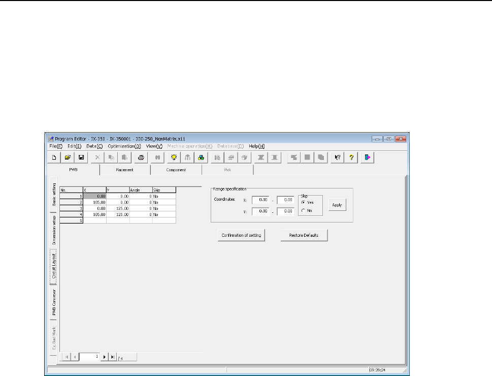 In case of a multi-circuit board, “0” is displayed in the “Angle” field. In case of a
