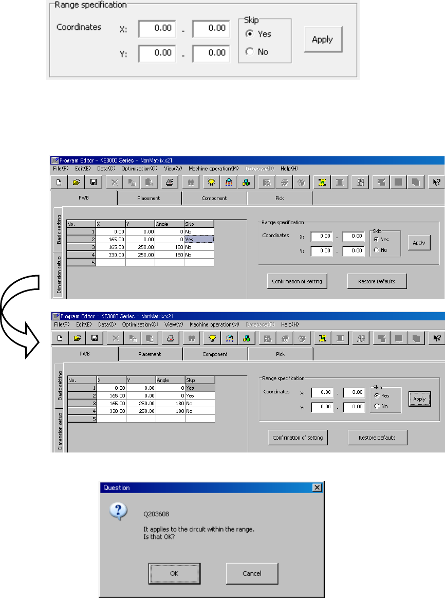 Note that when you press the [Apply] button, the following “Question” dialog box appears