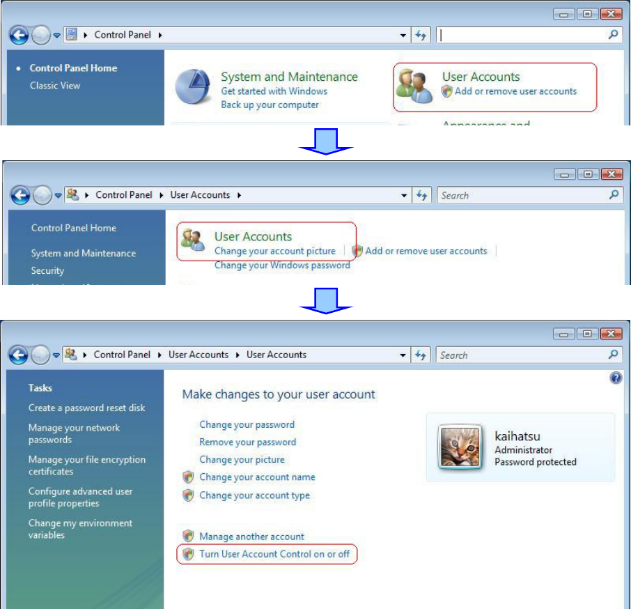 When the "User account control (UAC)" is made effective on the Windows Vista / Windows